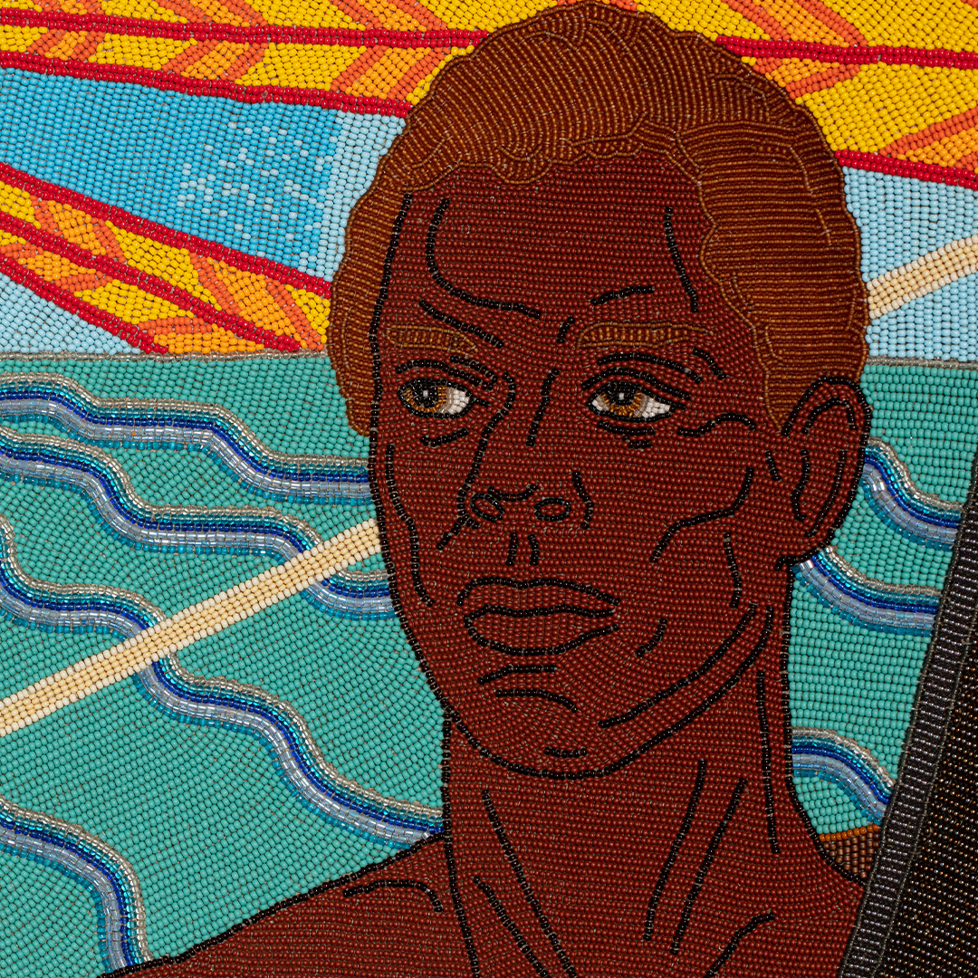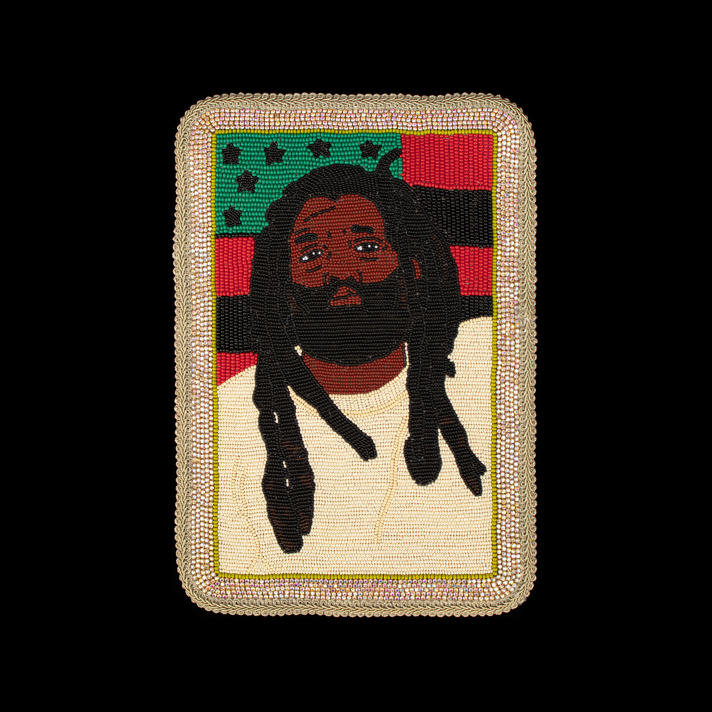 Demond Melancon, a 2023 Joan Mitchell Fellow, is known for pioneering an emerging contemporary art practice using the same beading techniques he’s applied over the past 30 years as a Black Masker. His work has been exhibited at the Victoria & Albert Museum, Art Gallery of New South Wales, International African American Museum, African Diaspora Art Museum of Atlanta, Museum of Contemporary African Diasporan Art, African American Museum in Philadelphia, Halsey Institute of Contemporary Art, Kalamazoo Institute of Arts, Haus der Welt der Kulturen (Berlin), London Design Festival, Biennale of Sydney, Art Miami, and EXPO Chicago. Melancon’s beaded portraits are included in public collections with the International African American Museum, the Toledo Museum of Art, the LSU Museum of Art, and the Birmingham Museum of Art. The context of Melancon’s work reflects a broad variety of stylistic influences, features imagery rich with symbolism and meaning, and confronts stereotypical representations of Black identity.